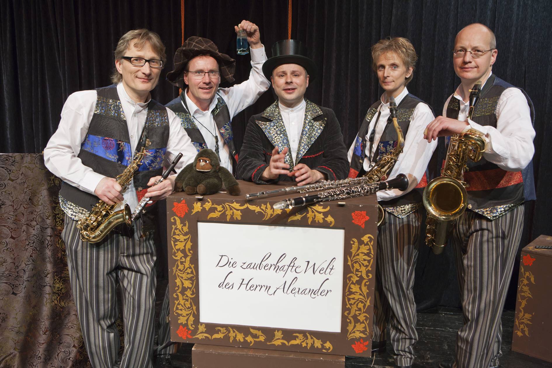 3) „Nussknacker und Mäusemärchen“ – Frei nach E.T.A. Hoffmann wird die Geschichte des Mädchens Clara erzählt, das am Weihnachtsabend von ihrem Patenonkel Drosselmeier einen Nussknacker geschenkt bekommt. Dieser erwacht in der Nacht zum Leben, um gemeinsam mit den Spielzeugsoldaten im Kinderzimmer den bösen Mausekönig zu besiegen. Wohl kaum ein klassisches Stück hat so viele bekannte Melodien hervorgebracht, wie Tschaikowskys Ballett. Das Pindakaas Saxophon Quartett präsentiert aber nicht allein Tschaikowskys „Ohrwürmer“, sondern auch Werke von Schumann, Reinecke, Mussorgsky und Strawinsky in raffinierten Bearbeitungen für Saxophone, Klarinette, Oboe und Querflöte.
